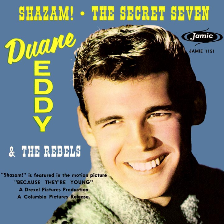 Casey and company became Eddy's permanent backing band, christened The Rebels. In addition to Al Casey on guitar and piano, his wife Vivian played rhythm guitar, going by the name Corky Casey. Saxophonist Steve Douglas (who would have nearly as much to do with Duane's signature sound as his guitar work), bassist Buddy Wheller and drummers Mike Bermani and Bob Taylor completed the lineup. Rhythm and blues quartet The Sharps (who became hitmakers a few years later as The Rivingtons) also joined in with non-lyrical vocals (and whoops and hollers, another part of the aforementioned signature sound) on some recordings. All the elements came together on the second single. "Rebel-'Rouser," like its predecessor, was labeled with a subhead (and his 'Twangy' Guitar) that appeared under his name on most releases over the next few years (the Rebels were also credited starting with the third release). Link Wray's harder-rocking "Rumble," a milestone in its own right, had beaten Eddy's "'Rouser" to the top 20 by several weeks, but Duane's record was bigger, spending most of July and August '58 in the top ten.