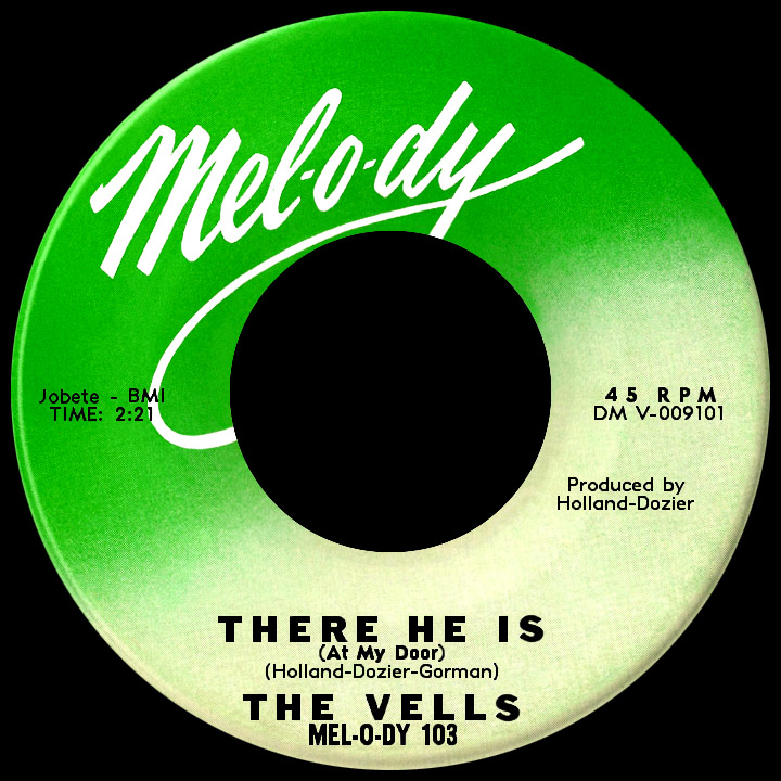 Gordy, hoping to establish another hot girl group as he'd done with The Marvelettes (and had been attempting with the "no-hit" Supremes), tried different approaches with the girls; within days they recorded two tracks, including "There He Is (At My Door)," with Gloria singing lead. In the space of a few weeks during the summer of '62, Martha and friends had recorded the material for four single releases, all of which came out under different names on three of the company's labels. The first two were on Tamla: Saundra Mallett and the Vandellas' "Camel Walk" came first, followed by Marvin's "Stubborn" single, giving "vocal accompaniment" label credit to The Vandellas. "I'll Have to Let Him Go" (backed with Martha's earlier solo recording of "My Baby Won't Come Back" with dubbed Vandellas vocals) was released on the Gordy label, the first 45 credited to Martha and the Vandellas. In October Gordy released "There He Is" under a shortened name, The Vells, on his newest label, Mel-o-dy. Only Gaye's single became a hit and the Vandellas were relegated to session work for a few months, blending well with Marvin on his 1963 hits "Hitch Hike" and "Pride and Joy" but with no further acknowledgement on the record labels.