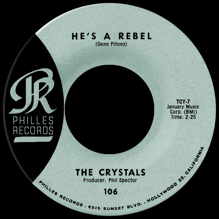 Gene Pitney was so impressed with "Uptown" that he set to work writing a song with the Crystals in mind. The dynamic lyrics of "He's a Rebel" struck a chord with Spector, possibly because it reminded him of himself ('...he holds his head up high when he goes walking by, he's my guy...he's not just one of the crowd...my baby's always the one, to try the things they've never done...'). As soon as he heard Gene's demo of the song, he prioritized getting the record out with his star act. Phil had quit his job at Liberty Records a few months earlier; could he have known Snuff Garrett was planning to produce the song for Liberty with relative newcomer Vikki Carr? He claimed to have found out about it after the fact. At any rate, a problem presented itself: the Crystals were touring and unavailable on short notice, so with Sill's help he hired The Blossoms, a female trio that, among other things, had recently done vocals for Duane Eddy's "(Dance With The) Guitar Man" as The Rebelettes (the name strictly a coincidence). Group members Fanita James, Gloria Jones and booming lead vocalist Darlene Wright had been doing sessions in the L.A. area for several years and had a handful of singles released by Capitol, Challenge and Okeh Records. They were in high demand and Spector paid them well to drop whatever they were doing and record the song. He also hired Bobby Sheen, a male vocalist he'd made a record with at Liberty, for background vocals.