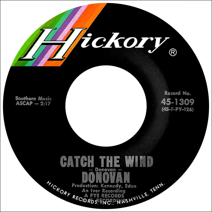 "Catch the Wind" ('To feel you all around me and to take your hand along the sand...ah, but I may as well try and catch the wind...') was written for Linda Lawrence, a young woman in a relationship at the time with Brian Jones of The Rolling Stones (Donovan had met the band shortly after his star began to rise); the single hit the U.K. top ten within weeks of the RSG shows and remained there through most of April and May, impacting the U.S. top 40 in June. Donovan has admitted many of his compositions were inspired by the initally-unattainable Linda, including the second hit, "Colours" ('Yellow is the color of my true love's hair, in the mornin'...when we rise...that's the time I love the best'), a British top ten that summer.