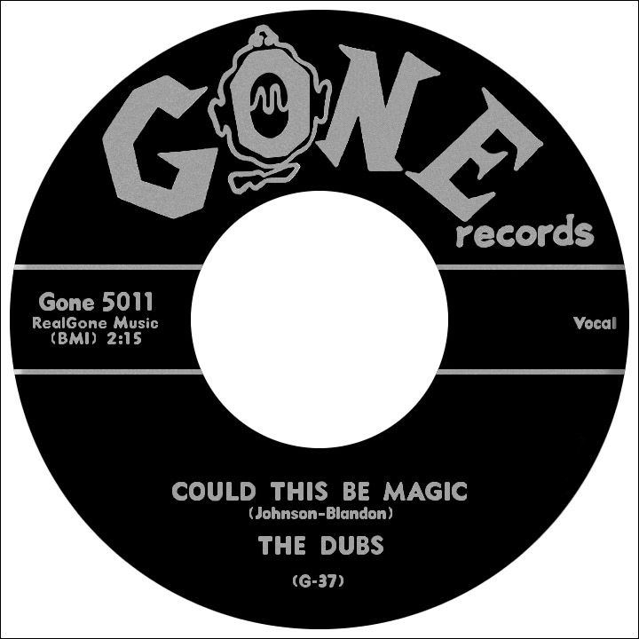 Keeping with the ballad approach, the session for the Dubs' biggest hit utilized some of N.Y.'s top musicians including guitarist Mickey Baker and sax man Buddy Lucas. "Could This Be Magic" (another composition by lead vocalist Blandon) took off later that summer, its unabashed romanticism ('...my heart's all aglow...') connecting on a larger scale, reaching the top ten on more than a dozen radio stations in major markets. It hit number 23 on Billboard and was followed by an expanded touring schedule including a headlining engagement at the Apollo in November. Its early '58 follow-up, "Beside My Love" (written by Johnson and former Scale-Tones bass vocalist Thomas Gardner), was oddly issued on both Gone and End (another of Goldner's many labels).