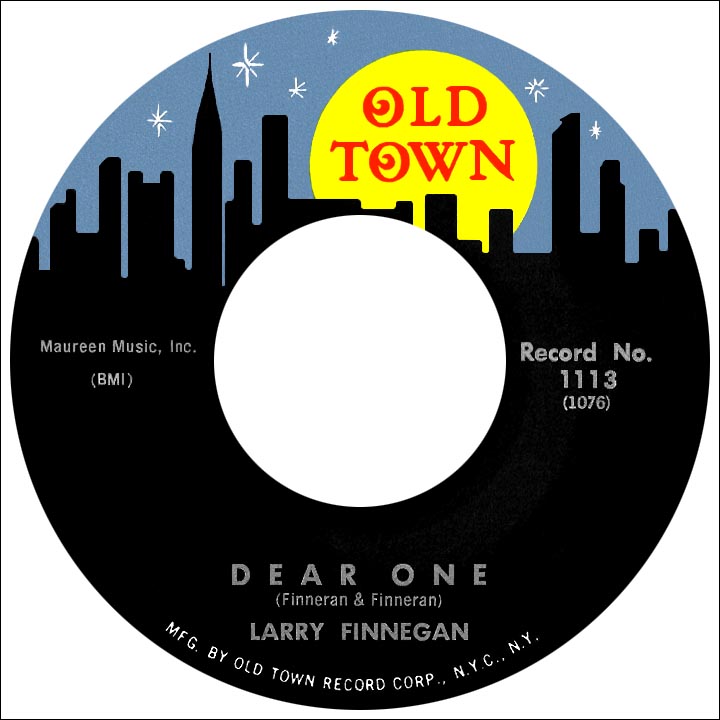 Vincent Finneran mirrored his brother's love of music and the two often wrote songs together. Larry learned to play guitar and, just for good measure, added piano, drums and two or three more instruments to his skill set. He and Vince hawked their pop compositions to various N.Y. record companies in 1961 and found a taker in Hy Weiss of Old Town, a label that had primarily released rhythm and blues material over its eight-year existence. Breakup song "Dear One" ('...I opened up and read your last letter...') was recorded that fall by Larry with a female session vocalist taking a spoken role, repeating the letter's heave-ho message: 'I tried so hard not to give in...but I lost my head and I lost my heart and I lost your love to him.' The finished take fit right in with the prevailing teen sound while moving at a slightly more rocking pace; his adjusted name adorned the labels (writer credits remained Finneran) but his ex-steady adversary was not identified. The single was pressed on both the earlier light blue Old Town 45s and redesigned mostly-black labels.