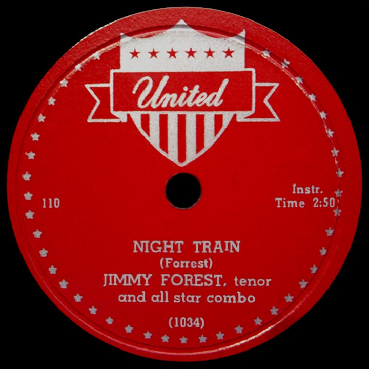 In the early 1950s, Forrest put together his own band, billing the shifting lineup of backing musicians as his All Star Combo on subsequent record releases. In 1951 he signed with a newly-formed Chicago-based company, United Records. His first release, "Night Train," was the biggest hit the label ever had, racking up several weeks at number one on the R&B charts in March and April 1952. Forrest claimed sole authorship of the instrumental composition (first pressings of the record misspelled his name "Forest" while correctly displaying the name on the label's writer credits), but the tune was actually a blend of two passages from previous Duke-related recordings. The first stanza was lifted from a 1940 recording, released on Bluebird, of "That's the Blues Old Man" by alto saxophonist Johnny Hodges and his Orchestra (his band credited on the label, in parentheses, as An Ellington Unit), which Hodges composed with Irving Mills. The second part of the song was adapted to sax from the piano riff that leads off Ellington's recording of "Happy Go Lucky Local" (from "The Deep South Suite"), released in 1946 on Musicraft. The trick was in the timing; the track does a slow burn climaxing with three low, uniformly raw notes unique to Jimmy's recording.