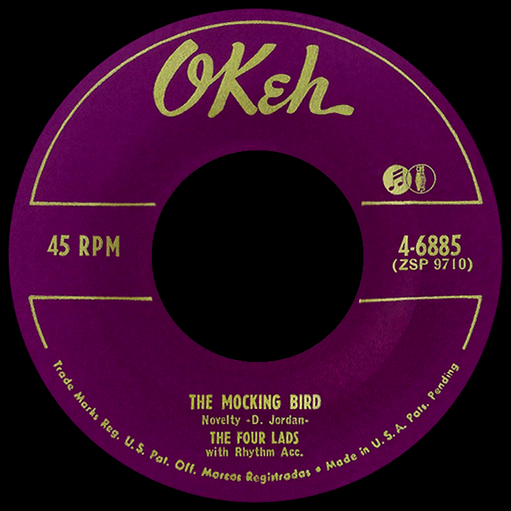 Dazz Jordan's gospel tune "The Mocking Bird" ('...the Lord looked down and he blessed the bird...he gave it the power to sing his word...'), was selected for their second Okeh single, returning them to their spiritual roots and taking a risk in the process; to the delight of the group and the record company, it was a top 30 hit in the summer of 1952. Without a strong follow-up, though, they continued their session work, backing Columbia artists Toni Arden, Jill Corey and Broc Peters (on his debut disc, "I Love You," a welcome introduction to the fascinating career of the singer and To Kill a Mockingbird actor who would soon change the spelling of his first name to "Brock").