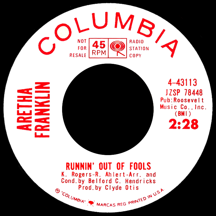 As "Today I Sing the Blues" had been an important transition from gospel music to the larger rhythm and blues field, "Runnin' Out of Fools" was the turning point that put her on the soul track. One of her best singles on any label, it was her first to chart in a year and a half and almost became a hit in the fall of '64 with a mid-chart run topped only by "Rock-A-Bye Your Baby" three years earlier. Otis was at the helm of an impressive body of work after that, with a looser, more comfortable Aretha on minor 1965 sellers "Can't You Just See Me" and "One Step Ahead," Nick Ashford and Valerie Simpson's "Cry Like a Baby," and the Inez Foxx hit "Mockingbird," which with "Lee Cross" and others were released later in the decade after her career exploded. "Take a Look," penned and produced by Otis, was one of these, featuring Franklin's passionate delivery of a towering social message on a level with Sam Cooke's "A Change is Gonna Come" or labelmate Bob Dylan's "The Times They Are A-Changin'." Listening to the song now, it's a mystery why it wasn't a giant hit (ditto that sentiment on the Cooke and Dylan songs).