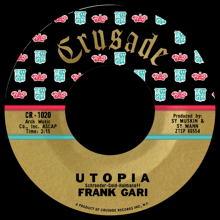 Sy Muskin, who ran the Crusade label out of the Brill Building, picked up Gari's contract and matched him with songwriters Aaron Schroeder and Wally Gold, who'd written several of Elvis Presley's hits. With Martin Kalmanoff, they came up with a romanticized, orchestrated take on the "Utopia" legend ('...the land where every dream you dream comes true...'), a place with 'golden skies and birds of paradise'. Frank hit the road in the fall of 1960, playing sock hops in many cities. The single gained steam near the end of the year and in the early months of 1961 it reached the top ten on stations in a handful of cities and top 20 in at least a dozen more while making the top 30 on the toughest chart of them all, Billboard's Hot 100 singles. The song's final line, 'I found Utopia when I found you,' suggested the popular 'magic land' was more of a feeling than an actual, or even make-believe, place.