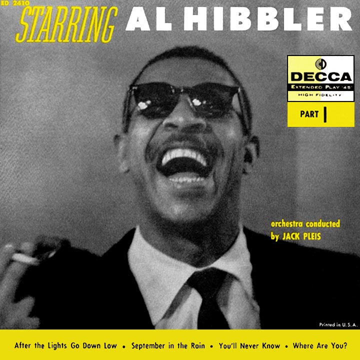 "Trees" (with its famous opening line 'I think that I shall never see...a poem as lovely as a tree'), composed in 1922 by Oscar Rasbach and Alfred Joyce Kilmer, was a hit for Al in 1949 on the independent Miracle label and became one of his signature songs. His interpretation of the traditional Irish-English song "Danny Boy" scored for him in '50 on Atlantic, then his top seller of '51, "What Will I Tell My Heart," appeared on Chess. Collaborations with Ellington and The Ellingtonians were released through other record companies until Hibbler quit for good over salary and a dispute Duke instigated over all his (successful!) freelancing. He made numerous recordings over the next few years on the abovementioned labels in addition to Mercury, Clef and even more, solo efforts and projects with the orchestras of Johnny Hodges and Count Basie.