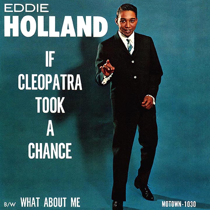Eddie was paired with producers Barrett Strong and Mickey Stevenson, who were responsible for the first of his ten 45s on Motown's famous "map" label. His vocal performance on "Jamie" was closer to Jackie Wilson's sound than before; so similar that many listeners, most of them unfamiliar with Holland, mistakenly thought it was Wilson, which may have worked in his favor, as the single reached the pop top 30 and R&B top ten in March 1962. Hopes were high for successive releases, dashed each time (the best shot may have been "Take a Chance on Me," hidden on the flip of "Jamie"). The Holland brothers composed the ballad "You Deserve What You You Get," shelved quickly in favor of an exotic Andre Williams-Gordy-Stevenson tune, "If Cleopatra Took a Chance." Then came a peppier summer offering, "If it's Love (It's Alright)."