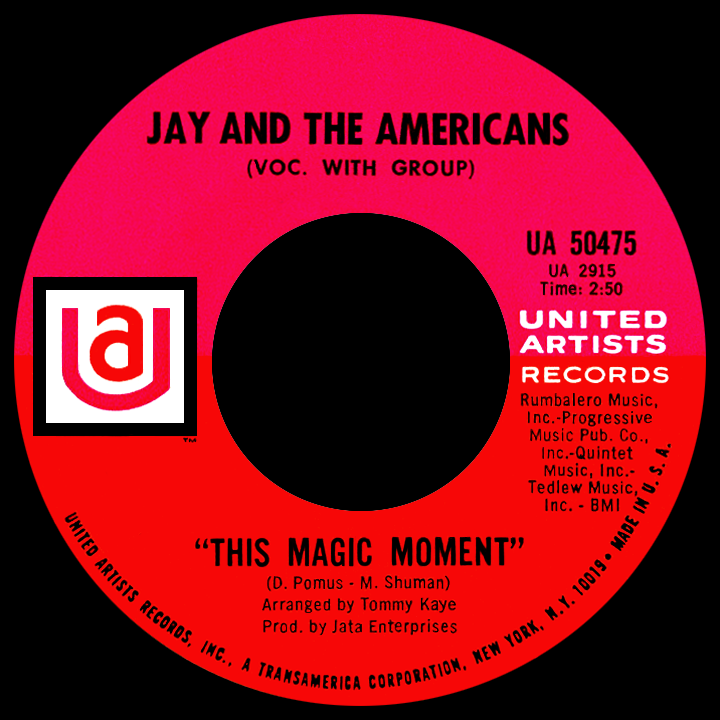 United Artists, one of the top movie studios, established its record division in 1957 for the purpose of releasing soundtrack albums of the company's film scores. West Side Story, which premiered in October 1961, became the studio's biggest moneymaker, but due to a licensing issue the soundtrack was released on Columbia Records (same as the 1958 Broadway cast album had been). UA made efforts to promote and further monetize its hot property by targeting top 40 radio with a version of "Tonight," the show's standout number. The newly-signed foursome got the nod. Leiber and Stoller, ever the jokesters (they masterminded that long run of crazy Coasters hits), decided to rename the group Binky Jones and the Americans. Traynor protested, putting his career on the line in the process, by insisting he wasn't going to be known as "Binky" for the rest of his life! He suggested his childhood nickname, J.T., or perhaps the even simpler Jay; the group became Jay and the Americans and people still aren't sure whether Jerry and Mike's suggestion was serious or they were just pulling a prank.