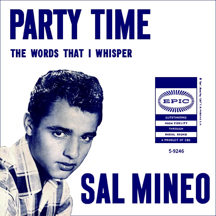 The next two singles were uptempo numbers and each landed mid-chart. "Party Time" was predictably contrived, while the early-'58 "Little Pigeon" is my favorite of all Salsongs: 'Come on little pigeon give me love, love, love...a-we'll be close like a couple-a doves...' set against a thrusting sax riff. Its flip is the delightfully demented "Cuttin' In" ('Back up Buster, take your hands off please...that's my baby that you're tryin' to squeeze...I'm cuttin' in, I'm cuttin in, you're cuttin' out, you're cuttin' out...') Sal's silly, whimsical side easily wins out over his pseudo-serious romantic recordings. Amour was never such a bore! Epic put a concerted effort into promoting the next single, "A Couple of Crazy Kids," but Sal's time as a recording artist had expired just ten months after it had begun...they just didn't know it yet. Epic released nine Mineo singles and one album between 1957 and '59 before moving on to greener pastures.