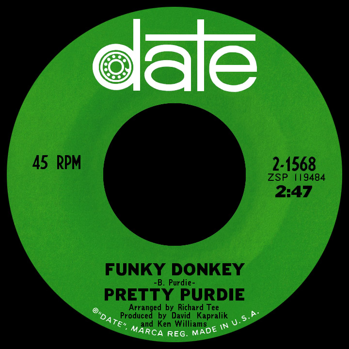 In 1967, the "Pretty" one was hired to play on sessions for a new Date Records act, Peaches and Herb. Label heads were so impressed with his work ethic and skills that they offered him a recording contract (similar to other drummers-turned-hitmakers like Cozy Cole). Purdy wrote "Funky Donkey," inspired by the kinds of records James Brown had been recently making, but with an emphasis on percussion. The track, a hot groove with Purdie's drumming throughout, has a spoken intro by Buddy Lucas ("It's funky donkey time!...Do it to it!"), who also contributed tenor and baritone sax; the other players were Seldon Powell on sax, axeman Billy Butler (from Bill Doggett's trio), session guitarist Eric Gale, Bob Bushnell on bass and arranger Richard Tee on piano and Hammond organ. The single was a hit up and down the east coast; it reached Billboard's Hot 100 and the rhythm and blues top 50.