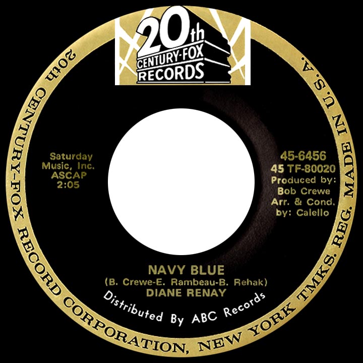 Not to worry. Crewe believed Diane Renay had something special. For her, though, the experience brought with it a mix of emotions she hadn't foreseen: the thrill of making records, the excitement of hearing her song on the radio, the isolation of being shunned by schoolmates, an insecurity that kept her from asking anyone why they grouped together, whispering who-knows-what when she appeared in the hallway. Paranoia? Of the typical teenage kind, maybe. Another year of this? High school graduation couldn't come quickly enough! Atco dropped her after the second single; Crewe set her up with 20th Century-Fox Records, the recording arm of the major film studio. He and "Candy Girl" cohort Larry Santos composed a killer song, "Unbelievable Guy," which came alive as an energetic, assertive production with enormous hit potential. But the plan was sidetracked when Crewe, Eddie Rambeau and Bud Rehak came up with a cute ditty about a girl left behind by her 'steady boy' who said 'ship ahoy!'; "Navy Blue" was recorded in a few takes at the end of a session and turned out to be the side the label promoted. Too bad for "Guy," a strong track that could have been a hit, displaying a tougher, more confident vocal by Diane than the sweet, longing tone of "Navy Blue."