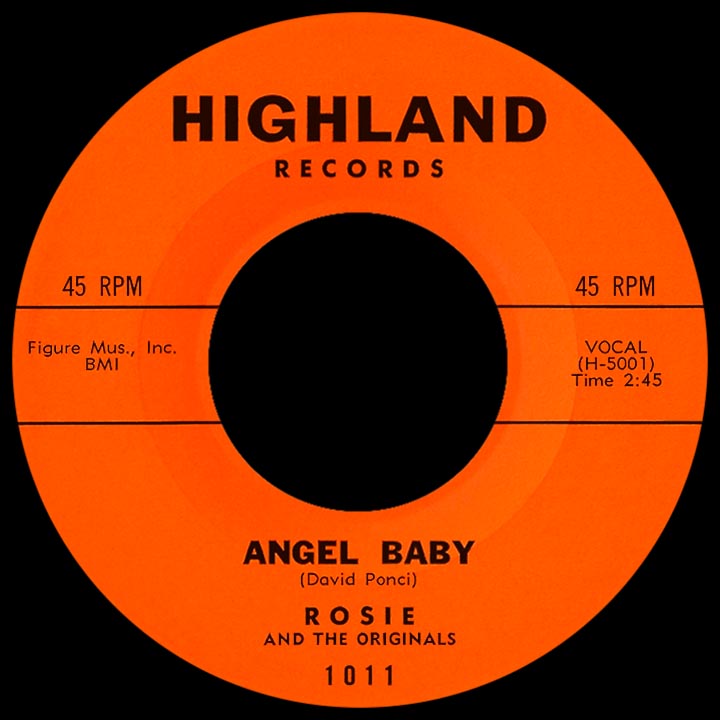 Everything about this project was different from the norm, including the way they got the song noticed. Talking a San Diego department store manager into playing the acetate, the brief in-store exposure elicited positive reactions from customers, and a record distributor who was there at the time set the group up with a small label, Highland Records. "Angel Baby," credited to Rosie and the Originals, caught on quickly, an immediate Southern Cal sensation in November 1960. Entering the national charts in December, it went top ten coast-to-coast in January 1961.