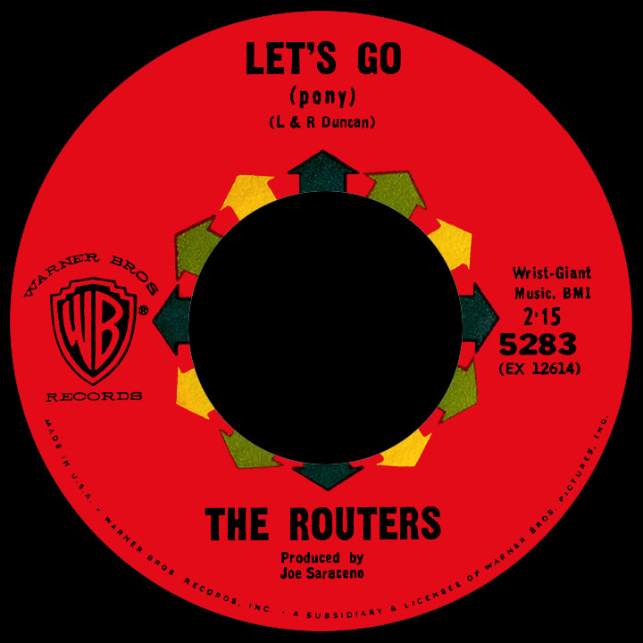 The first single's working title was "Let's Go," but "(pony)" was added, since it used the same beat and basic chord structure as Don Covay and John Berry's "Pony Time" (first recorded by Covay's group The Goodtimers and also by Chubby Checker, who took it to number one) and would tie into the popular dance, helping its chances of becoming a hit. Turns out it wasn't necessary, the song's fate was not connected to a dance of any kind. The album released shortly after was titled Let's Go! With the Routers, downplaying the pony aspect, with a cover photo of three cheerleaders jumping in the air. That tie-in was not an exaggeration, as cheerleaders across the nation had begun using the song's clap-and-shout opening and before long the actual recording was being played at major sporting events, as it still is today.
