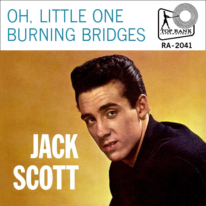 Carlton began to change his tune, seeking more control over what he felt Jack and the Chantones should record. The singer's management got into a battle with the company's owner and Jack wound up starting the new decade with a new record label, Top Rank. No momentum was lost, as "What in the World's Come Over You" shot to the top ten in February 1960 and "Burning Bridges" made it two in a row four months later (with a strong flip, "Oh, Little One," a hit in its own right). The softer arrangements of these songs would make them seem ripe for country crossover, yet the C&W community didn't embrace Jack's work, though the songs somewhat surprisingly hit the upper reaches of the R&B charts (as "My True Love" had in '58). Carlton, not happy with the defection to another label, continued to release older Scott tracks on his Guaranteed subsidiary, including the smokin' "Go Wild Little Sadie."