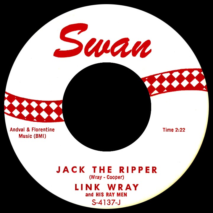 Disc jockeys began playing "Jack the Ripper" in 1963, prompting fearless, forward-thinking Bernie Binnick of Swan Records to pick up the master for distribution. The two-year-old track became Link's third hit with a respectable two month up-and-down run on the national charts in the summer of '63. Wray made new recordings for Swan over the next couple of years as Binnick gave him free creative reign; "Week-End" (an organ-steeped remake of the 1958 Kingsmen side project by Bill Haley's Comets), guitar-string-peckin' "Run Chicken Run" and "Deuces Wild" are highlights. "I'm Branded," like "Raw-Hide," lifted its title from NBC's 1965 Chuck Connors western series Branded; a cover of Neal Hefti's "Batman Theme" in '66 (with Link and Shorty speaking silly Batman and Robin lines on an otherwise rocking instrumental) was a thinly-veiled attempt to jump on TV's Batmania bandwagon.